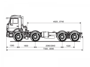Шасси 6*4, длина рамы 5 970 мм, межосевое растояние мм, грузоподъемность 12 тонн