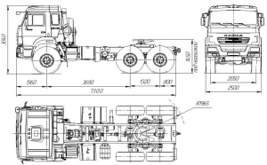 Шасси 8*8, длина рамы 8 135 мм, грузоподъемность 23.52 тонн