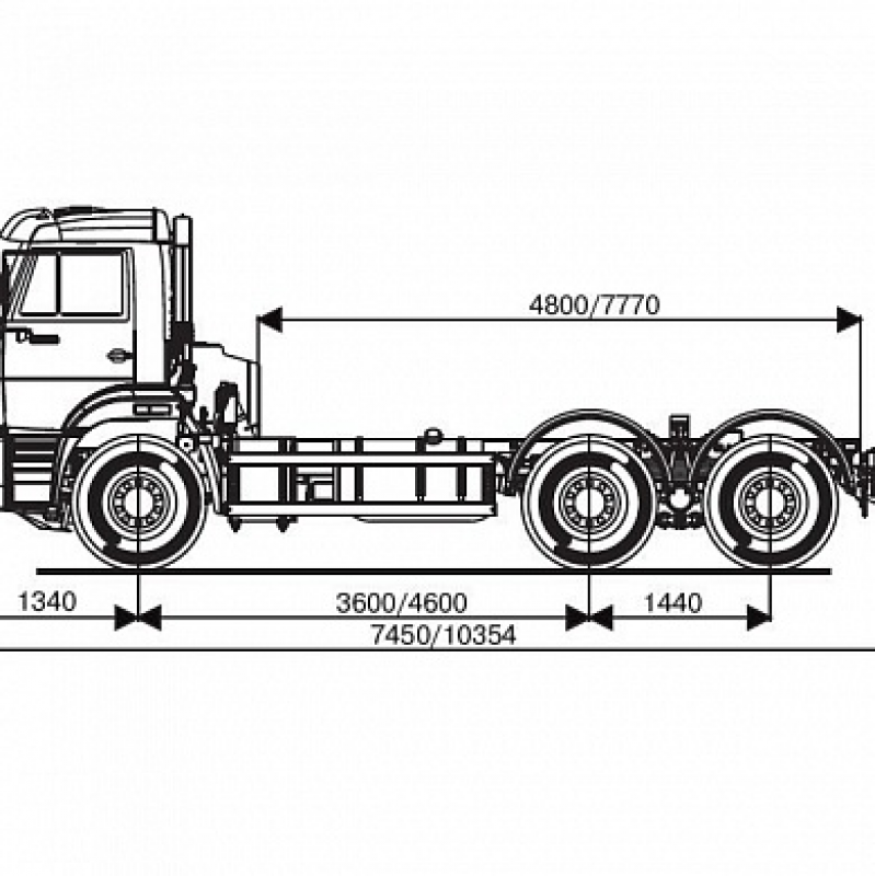 Шасси 6*4, длина рамы 5 970 мм, межосевое растояние мм, грузоподъемность 12 тонн