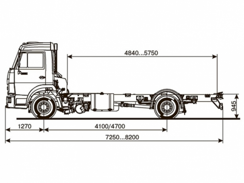 Шасси 4*2, длина рамы 4 920 - 5 750 мм, грузоподъемность 6,62 - 6,97 тонн